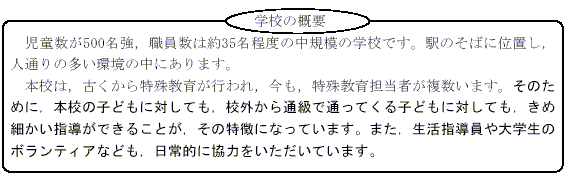 中学年の子どもです。今までも,生活面で何かと目立ち,情緒教室や言葉の教室で,個別指導を受けていた子どもです。 |